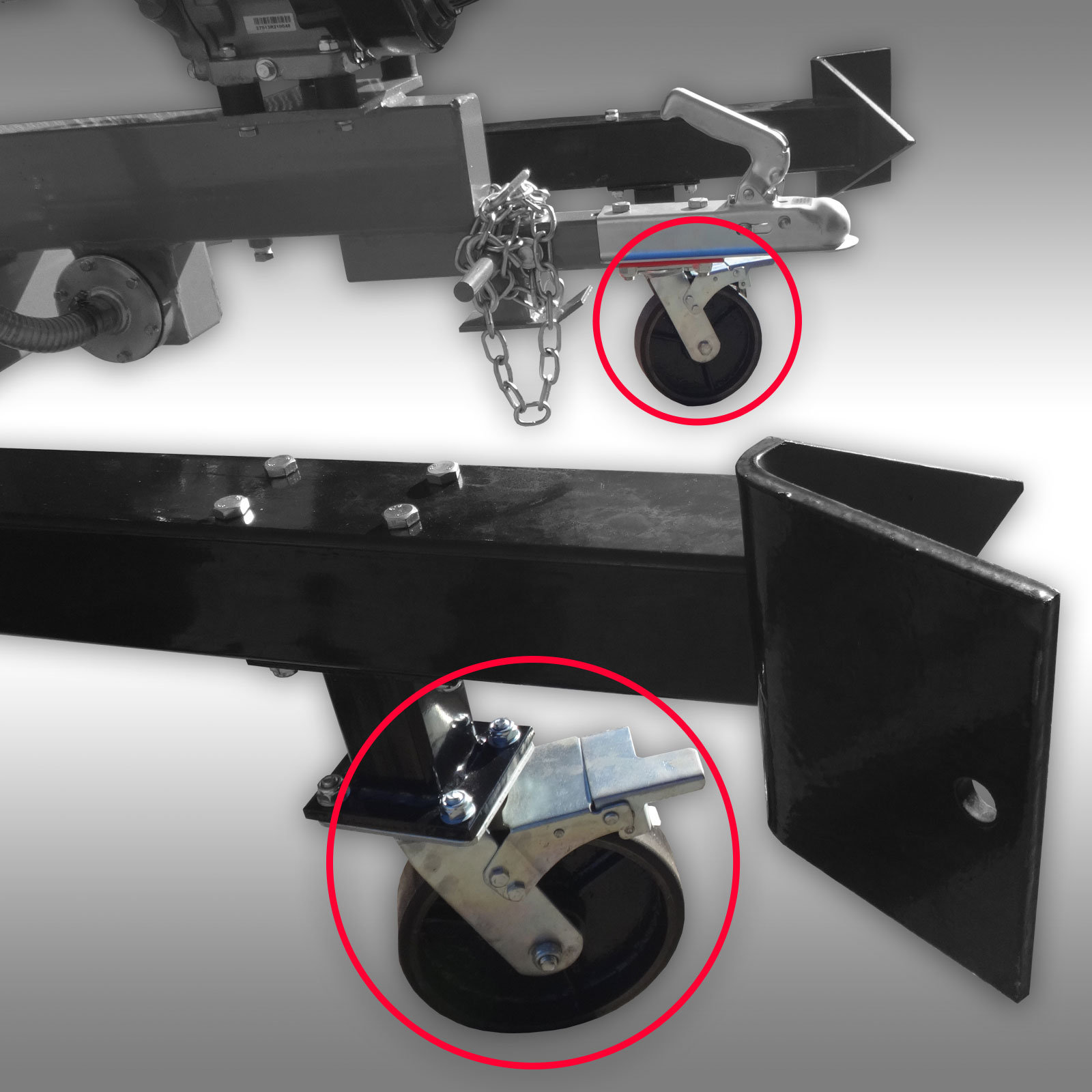 A set of 2 caster wheels with mounting brackets for the MB-300 and MB-360 Towable Backhoe.